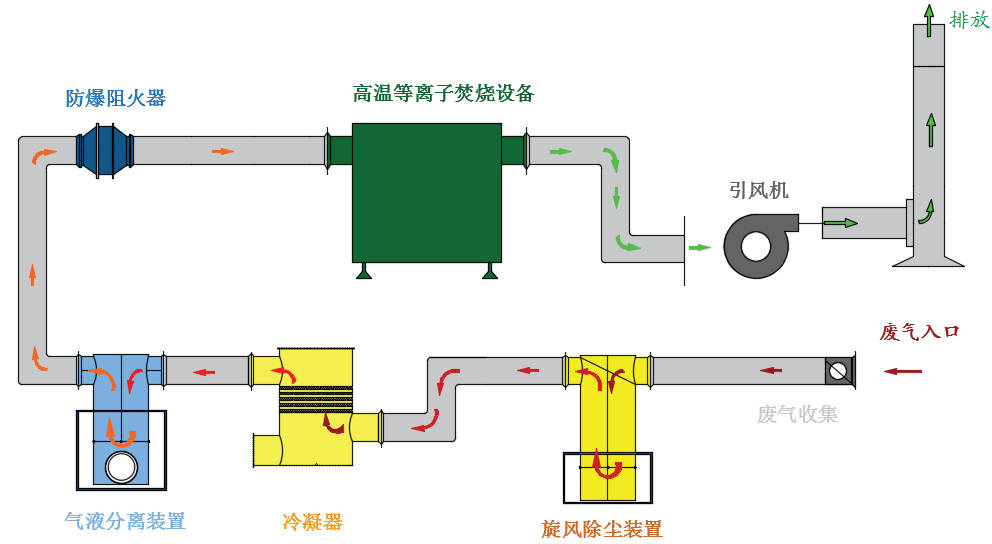 高溫等離子焚燒技術能夠處理高濃度、成分復雜、易燃易爆、含有固態、油狀物的工業廢氣。